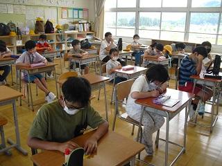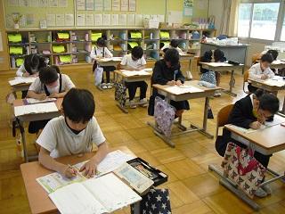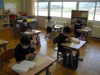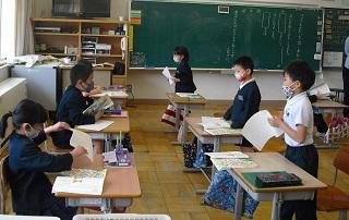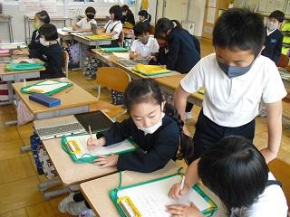 2年生の国語。ペアで問題を出し合っていました。