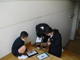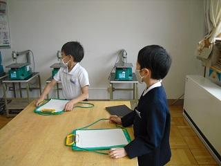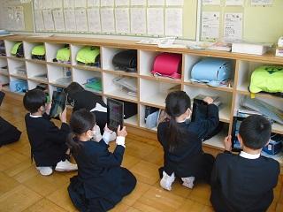GIGA端末で写真を撮る練習です。きれいに整頓したロッカーを撮影していました。