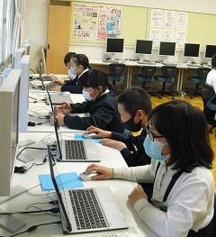 5年生はパソコン教室で名刺を作成していました。
