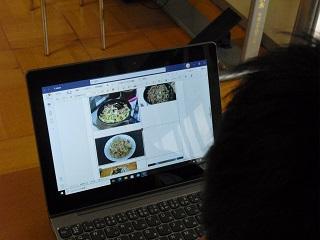 家庭の授業。家で作った料理をGIGA端末で撮影したものをみんなで共有していました。野菜炒めやチャーハンなど、どれもおいしそうでした。