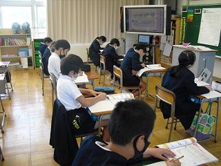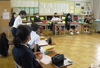 6年生。今月の生活目標の振り返りをしていました。
