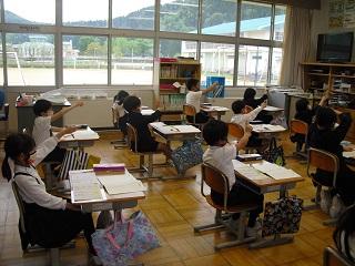 1年生の国語の授業。「さ」のつく言葉をたくさん出していました。次に「さ」の書き方を学習していました。