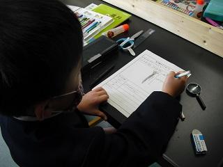 3年生の理科の授業。種の観察をしていました。細かいところまでよく見てかいていました。