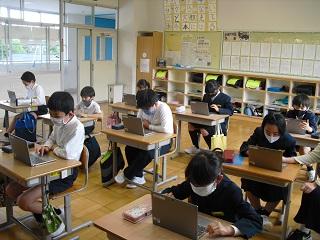 4年生の図工の鑑賞の授業です。GIGA端末を使って、友達の作品から感じたことやよさなどを書いています。