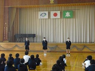 鳥越っ子集会では、4月の振り返りとこれからの取組について全校のみんなに伝えました。今回から鳥越っ子集会は、つながりを大切にするために、たてわり班で並んでいます。