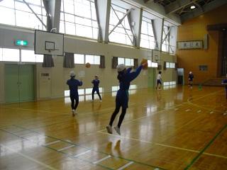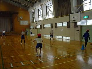 5年生は体育のバスケットボールで、パス、ドリブル、シュートの練習をしていました。