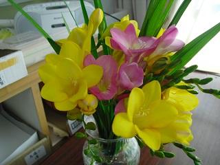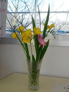 きれいなフリージアを3年生と5年生が届けてくれました。とてもいい香りがします。ありがとうございました。