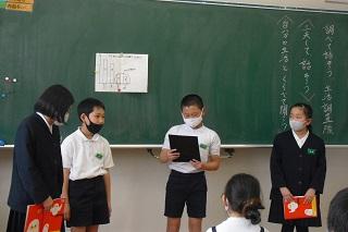 4年生の国語の発表会に3年生が参加しました。「4年生は大きな声で相手を意識して発表していた」「3年生が姿勢を正してしっかり聞いていたので自分たちも発表しやすかった」とお互い感想を述べ合っていました。