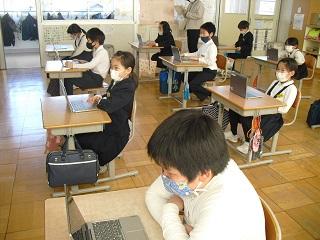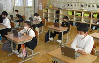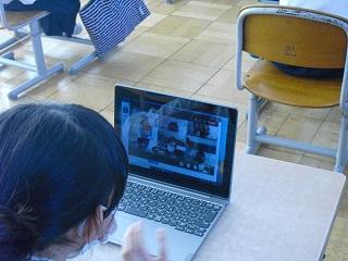 3年生はGIGA端末を使って、テレビ会議をしました。画面にみんなの顔がうつるとみんな大喜びでした。