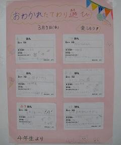 昼休みには1~5年生が6年生に向けての感謝のメッセージを書きました。