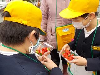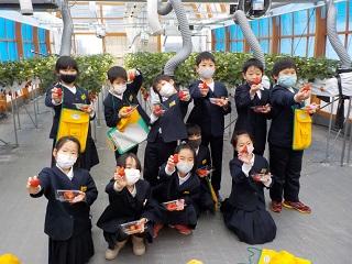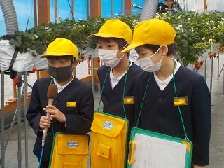 3年生は校外学習で金沢工業大学白山麓キャンパスに行ってきました。これまでは学校近くの、いちごファームHakusanで、いちご栽培の工夫を聞いたり、子株とりや苗の定植体験をさせていただいたりしていました。大雪の影響でビニールハウスに支障が出たため、いちご摘み体験はできないと思っていたのですが、ご厚意で金沢工業大学白山麓キャンパスにあるビニールハウスで体験させていただけることになりました。「摘み取りが楽しかった」「とっても甘くておいしかった」と子どもたちは大喜びでした。いちごファームHakusanの皆さん、ありがとうございました。
