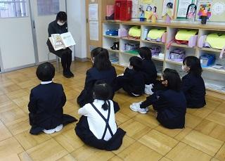今日の朝読書はお話キャラバン隊でした。子どもたちは毎月この時間を楽しみにしています。
