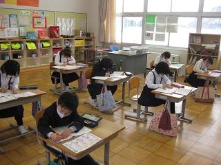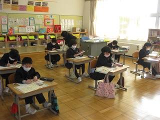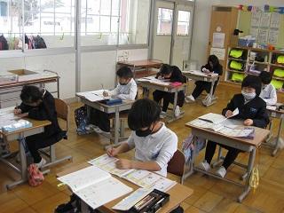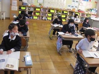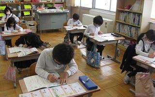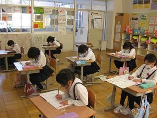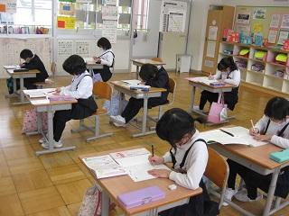 1年生の国語。筆順に気を付けながら漢字の練習をしていました。
