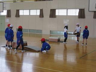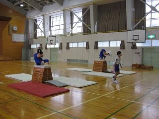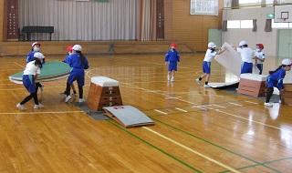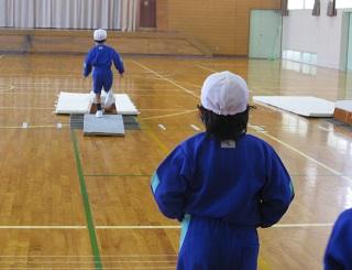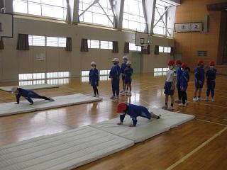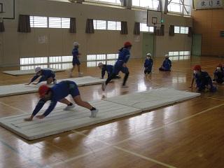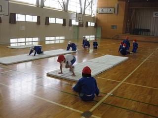 3年生の体育。マット運動をしていました。