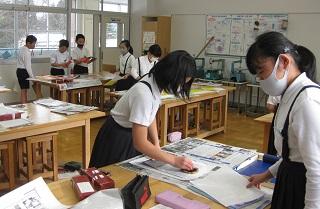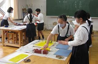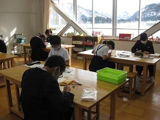 6年生の図工。オルゴールに彫刻をしていきます。