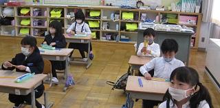 下校前に算数のプリントをたくさんの子が持ち帰っていました。意欲的に学習に取り組んでいます。