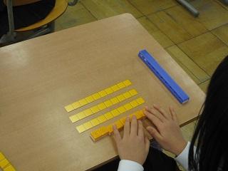 2年生の算数の授業。1000が10個で10000となることを学習していました。