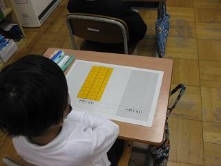 4年生の算数。面積について学習していました。周の長さは同じでも面積が異なることがあることにも気づきました。