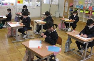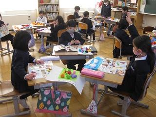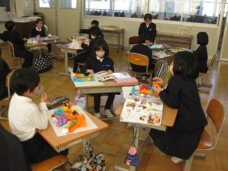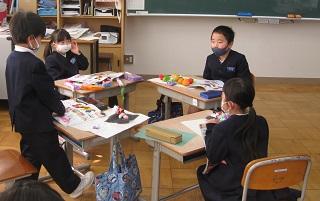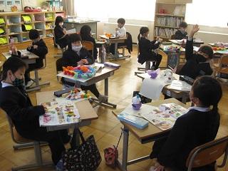 1年生の図工。自分の作品について工夫したところを発表していました。