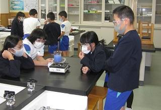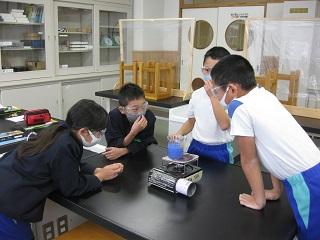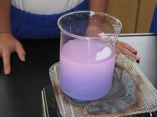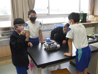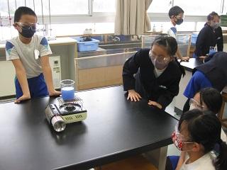 4年生の理科。ビーカーの水がどのように温まっていくのか実験していました。