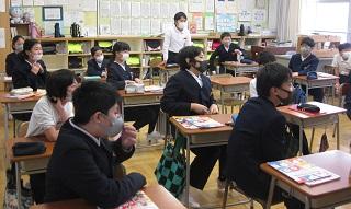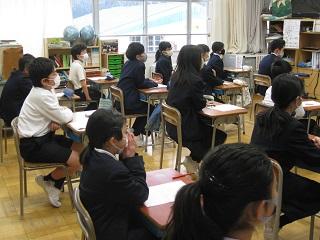 1年生の道徳の授業。文化の違いについて自分の意見を発表したり、友達の考えをしっかり聞いたりしていました。