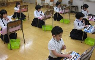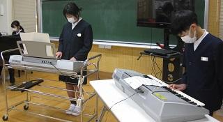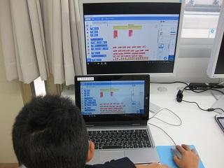 4年生の音楽。プログラミングソフトを使って、旋律作りをしていました。
