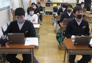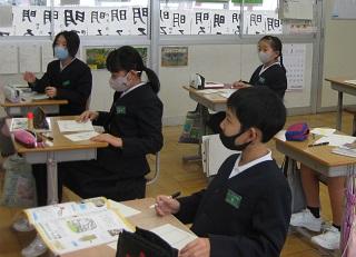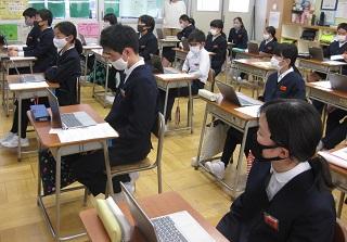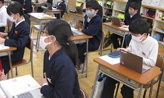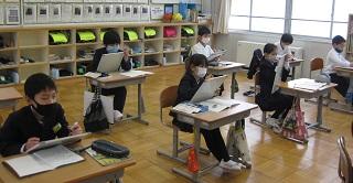 5年生の授業。「GIGAスクール構想」の実現に向けて、一人一台端末を活用するための準備をしました。