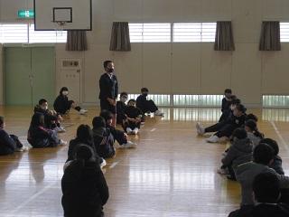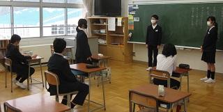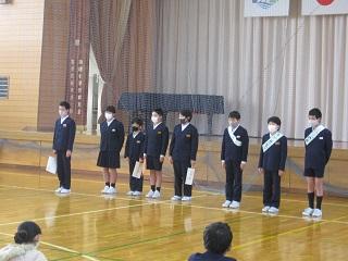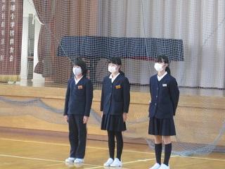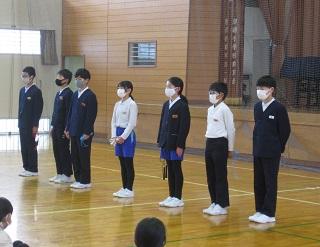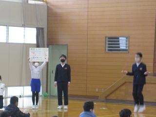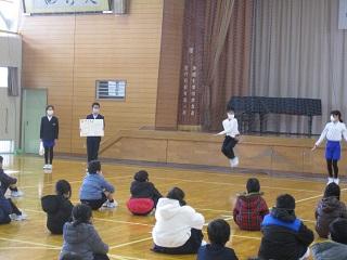2021年1月18日 11時43分今日の集会では、体育・美化委員会の皆さんが、なわとびの技のポイントを実技もまじえて紹介しました。今日からなわとびチャレンジタイムが始まりました。みんな長休み・昼休みに頑張っています。