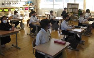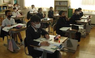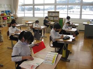 学校前も除雪していただいているおかげで、子どもたちも安全に玄関に入ることができました。ありがとうございました。今日の授業様子です。