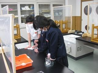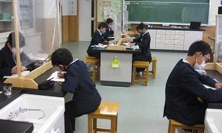 5年生の理科。水に食塩を溶かして、どれだけ溶けるのか確かめていました。