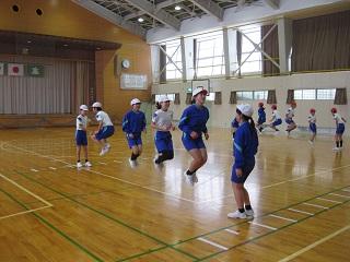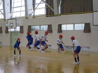 6年生の体育。はじめに縄跳びをしていました。チームワークもばっちりです。