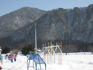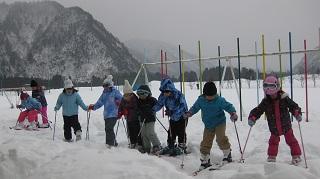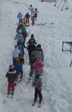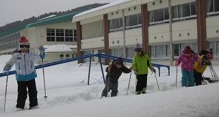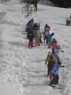 1・2年生は、スキーで昨日より長い距離を歩きました。少しずつ慣れてきました。