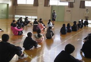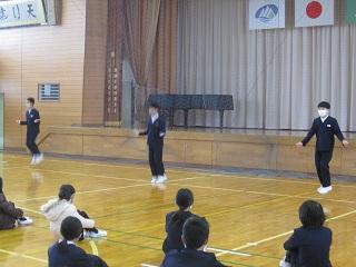 今日の集会では、体育・美化委員会の皆さんが、なわとびの技のポイントを実技もまじえて紹介しました。今日からなわとびチャレンジタイムが始まりました。みんな長休み・昼休みに頑張っています。