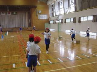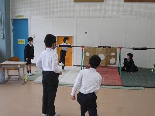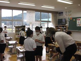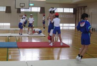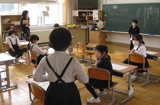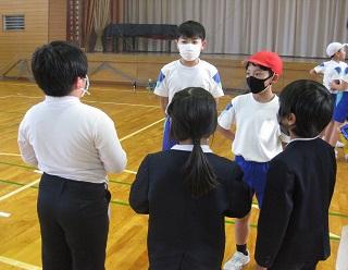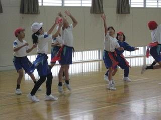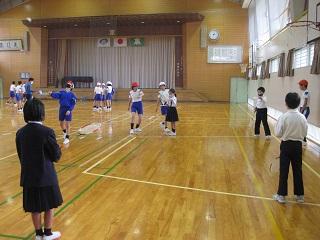 3年生の体育と音楽の授業。体育では相手が受け取りやすいようにボールを投げる練習をしていました。これからネットをはさんだボール運動に進んでいきます。