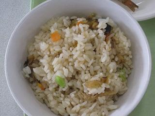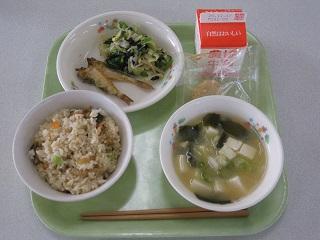 今日の給食は「海女採りさざえ給食」でした。「石川県の特産物をみんなで食べよう!」という取組で、「さざえ」が給食に登場しました。輪島の海女さんが潜ってとった「さざえ」がごはんに入っています。食育の一環として、輪島の海女漁(重要無形民族文化財)や海女採りさざえの概要がわかるチラシ(石川県農林水産部水産課作成)を配布しましたのでご覧ください。今日の給食のメニューは、サザエさんごはん、はたはたの唐揚げ、磯野家のサラダ、かつおとわかめのみそ汁、きなこのおはぎでした。今日もおいしくいただきました。