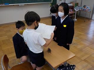 1年生がきれいなフラワーアレンジメントを持ってきてくれました。ありがとうございました。