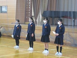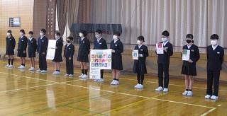 6年生からは、総合的な学習の時間に取り組んでいる「SDGs」についての発表と給食コンテストの結果発表がありました。6年生が考えたメニューはどれもおいしそうでどれに投票するかみんな迷いましたね。