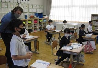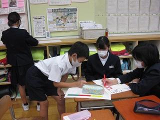 3年生は自分の名前に含まれるアルファベットを確認していました。