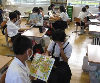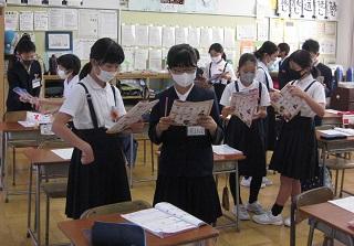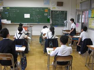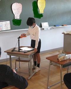 5年生の国語。資料をもとに自分の意見を発表していました。