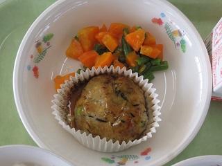 今日の給食は、白山めぐみん給食でした。今日のメニューは、豆腐ハンバーグ、にんじんグラッセ、コーンかき玉スープです。今回の食材は「にんじん」です。グラッセとスープに使われています。色が濃くて、甘みの強いにんじんでした。豆腐ハンバーグには、かた豆腐が使われています。どれもおいしかったです。