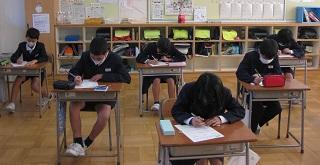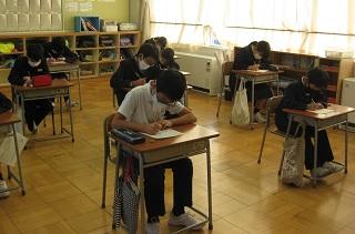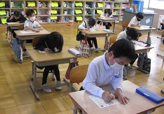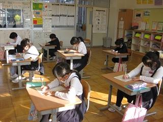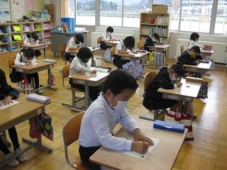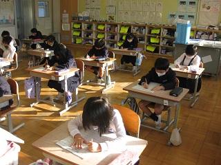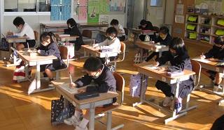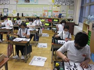 2年生の書写。清書をするところです。