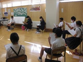 6年生の音楽。これから歌う曲を聴いているところです。