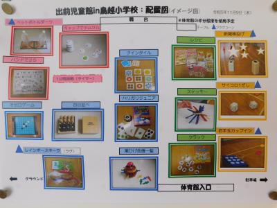 「出前児童館」は、児童館や児童センターのない地域で実施され「遊びや児童館で行う文化的活動等の機会を提供する」ことを目的に行われています。