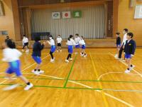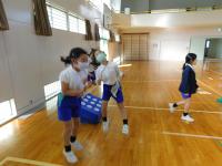 たてわり班チーム対抗での勝負。体育館2階からは、1~3年生の熱い視線が注がれていました。17日(金)は、『低学年ドッチボール大会』を予定しています。