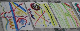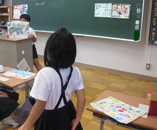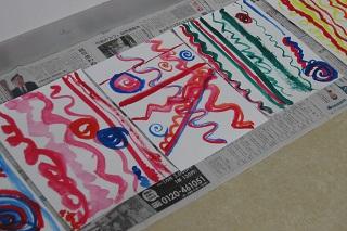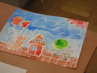 3年生の図工の授業では、絵の発表会をしていました。絵の具をにじませるという方法を使って表現しています。