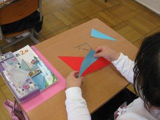 2年生の算数の形について授業です。今日は直角三角形について学習していました。