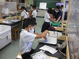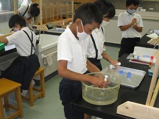 4年生の理科の授業です。水も空気と同じように押し縮めることができるのかという課題で実験していました。