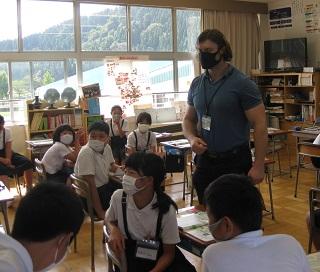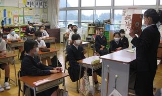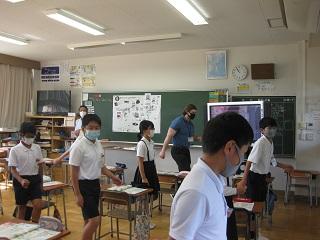 5年生の英語の授業です。道案内の仕方を練習していました。