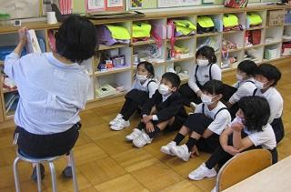 10月になりました。なりたい自分を目指し、これからもがんばっていきましょう。今日は中秋の名月です。夜空を眺めてみましょう。今日はお話キャラバン隊の日でした。どんな本を先生が読んでくれるのか子どもたちは楽しみにしています。