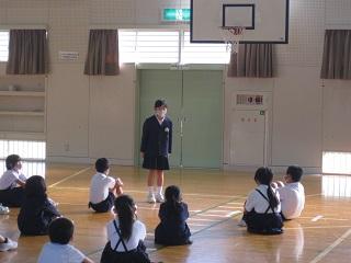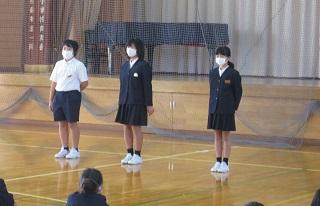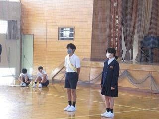 体育・美化委員会です。今日のお掃除デーについて説明しています。